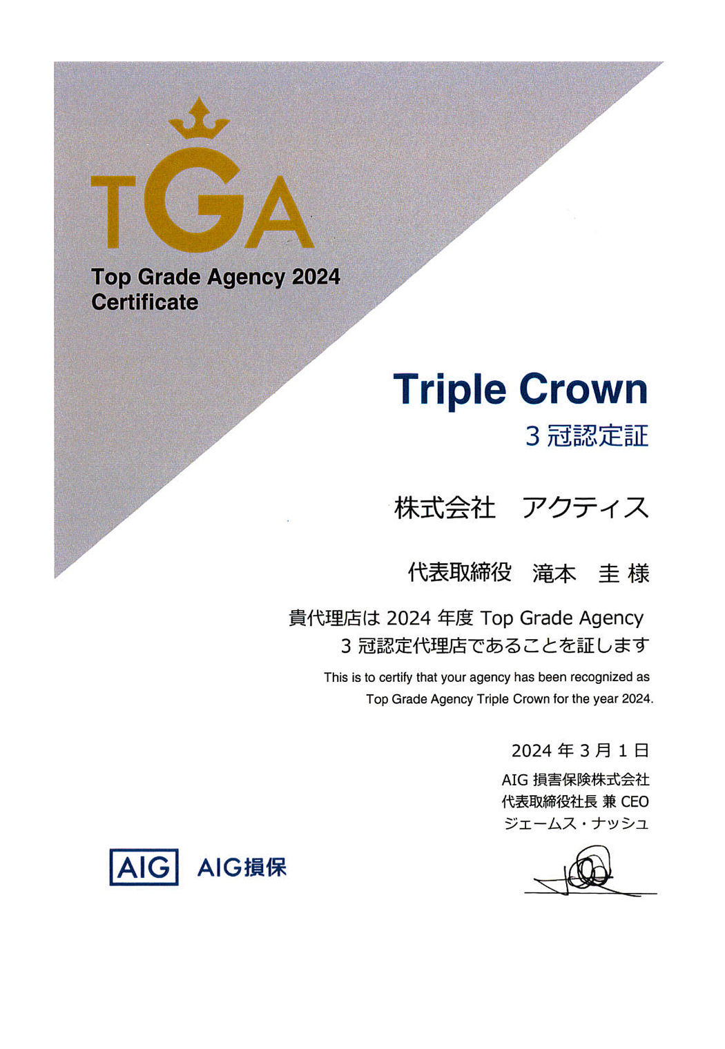こんにちは。 先日より我が家で犬🐶を飼いだし、毎日帰宅が楽しみで仕方ない『アクティスの滝本』です。 さて、おかげさまで本年度もAIG損害保険から2021年のAMA承認代理店の認定を受けました。 AMAとはAIG損保のプロフェッショナル代理店の中でも所定の基準を充たしたことにより、 AIG Model Agency(略=AMA)の称号を付与された、特に顧客満足度の高いサービスを提供できる プロフェッショナリズムの優れた代理店のことです。 今回の承認代理店数は、全国約20.000店の代理店の中から、208店が認定となりました。...